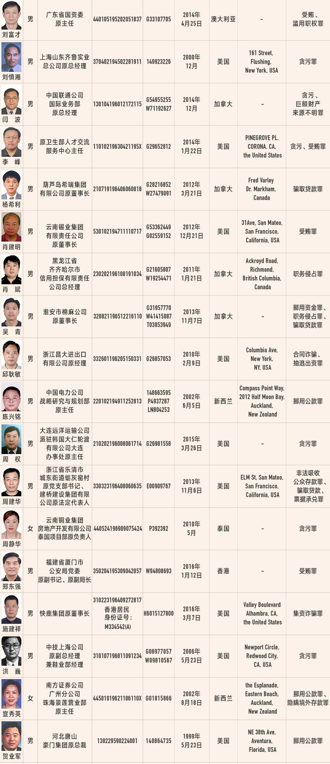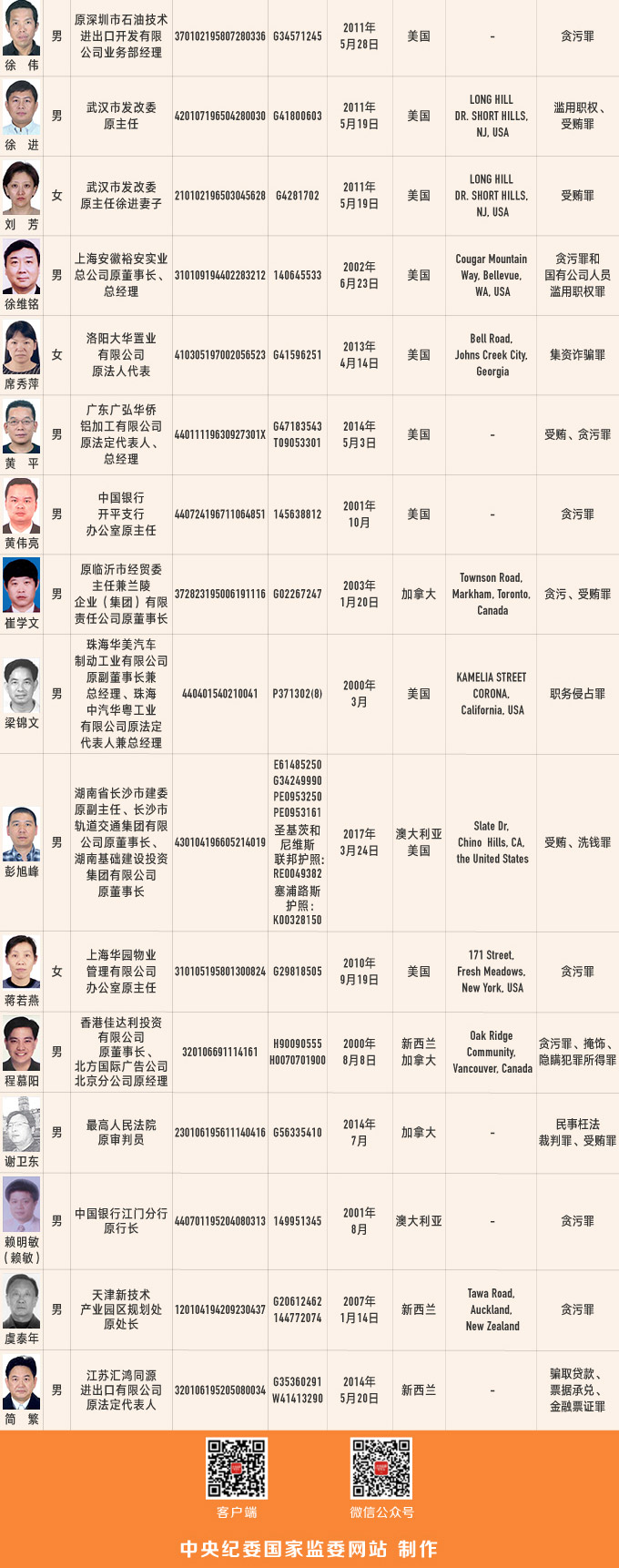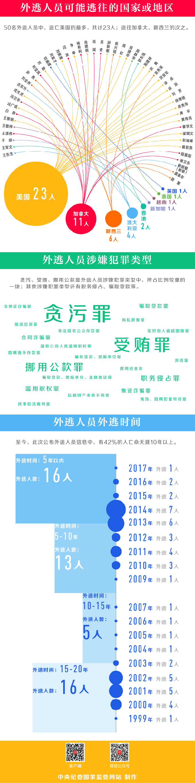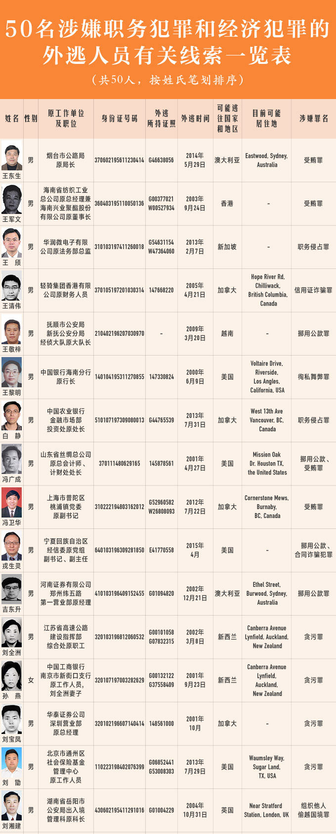 图解:50名涉嫌职务犯罪和经济犯罪的外逃人员有关线索一览表