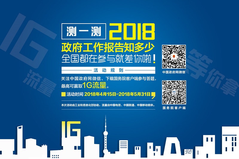 第三步:进入国务院客户端参与“测一测,2018政府工作报告知多少”答题活动。