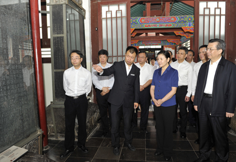 贺荣首先来到西安市碑林廉政教育基地,观看《清风正气镂石成金》专题片,听取弘扬孝治、民本、公廉、修身、勤俭等古代廉政文化思想的介绍,指出要坚定文化自信,深入挖掘和用好陕西优秀传统文化,积极借鉴历史上优秀廉政文化,以文化之力凝聚起反腐倡廉的智慧和力量,用文化增强全面从严治党的自信和自觉。