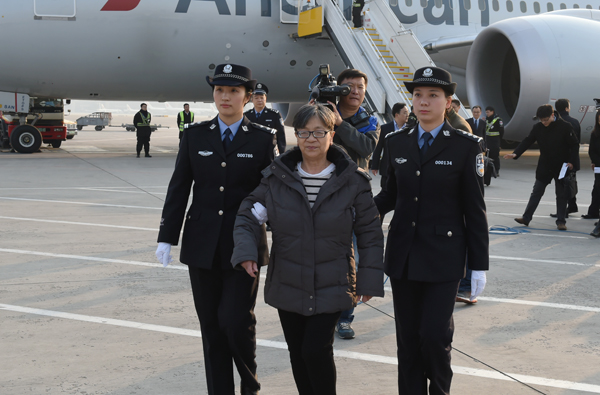 2016年11月16日,在中央反腐败协调小组国际追逃追赃工作办公室的统筹协调下,经中央有关部门和浙江省追逃办密切协作,潜逃海外13年之久的“百名红通人员”头号嫌犯杨秀珠回国投案自首。(以上照片由中央纪委监察部网站张祎鑫摄)