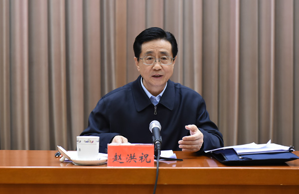 赵洪祝指出,这次全国两会是在我国经济社会发展承上启下关键时期召开的一次重要会议,对实现“十三五”时期经济社会发展良好开局、夺取全面建成小康社会决胜阶段的伟大胜利,具有十分重要的意义。全面建成小康社会,关键在党。各级纪检监察机关要学习领会两会精神实质,牢固树立和贯彻落实新发展理念,把思想和行动统一到中央的决策部署上来,以顽强的毅力和不屈的韧劲,把党风廉政建设和反腐败斗争引向深入,为全面从严治党提供有力支撑。要严明政治纪律和政治规矩,加强对纪律执行情况的监督检查;深化纪律检查体制改革,确保各项改革举措落地生根;突出政治巡视,聚焦全面从严治党,充分发挥巡视利剑作用;在坚持中深化、深化中坚持,持之以恒落实中央八项规定精神;把纪律挺在前面,综合运用监督执纪“四种形态”,保持遏制腐败高压态势;坚决整治和查处侵害群众利益的不正之风和腐败问题,加强基层党风廉政建设。要以“学党章党规、学系列讲话,做合格党员”学习教育为契机,进一步加强机关干部队伍建设,切实增强政治意识、大局意识、核心意识、看齐意识,形成讲政治、守纪律、敢担当、善作为的良好氛围。