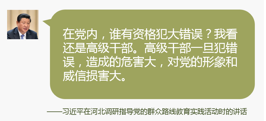 邓小平同志说过:“在中国来说,谁有资格犯大错误?就是中国共产党。”那么在党内,谁有资格犯大错误?我看还是高级干部。高级干部一旦犯错误,造成的危害大,对党的形象和威信损害大。我们绝大多数党的高级干部在思想上、政治上、作风上是过硬的。但是,也有少数高级干部身居高位久了,慢慢疏远了群众,出现了这样那样脱离群众的现象,个别的甚至违法乱纪、以权谋私、腐化堕落。高级干部必须时刻警醒自己,做到自重自省自警自励。