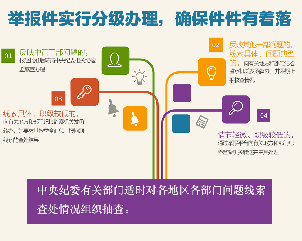“对收到的每一个举报问题线索,我们都十分重视,会安排专人处置,进行分筛分选,向各级纪检监察机关督办、转办或转送。”中央纪委有关部门负责人介绍。据了解,2015年,中央纪委有关部门向各级纪检监察机关督办、转办、转送反映“四风”等方面问题线索5000余件,严肃查处了一批违纪违规党员干部。