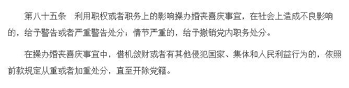 不止在过年,平时的婚丧喜庆现在都要小心,否则触碰了“红线”,后果严重。也有党员干部打听,婚丧喜庆今后要怎么办?