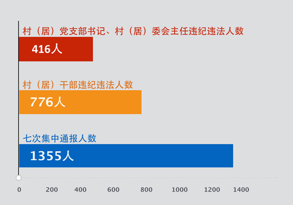 其中涉及村(居)党支部书记、村(居)委会主任共416人,占通报村(居)干部人数的53%,占被查人员总数的30%。