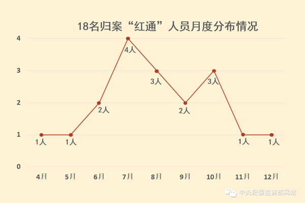 《首名红色通缉令嫌犯今日落网》、《“红色通缉令”2号嫌犯李华波被遣返回国》、《“百名红通人员”杨进军被从美国强制遣返回国》……细数中央纪委监察部网站反腐败国际追逃追赃专栏,可以一目了然地看出红通人员到案的时间轴。4月公布名单以来,每个月都有红通人员归案,7月归案人数最多。