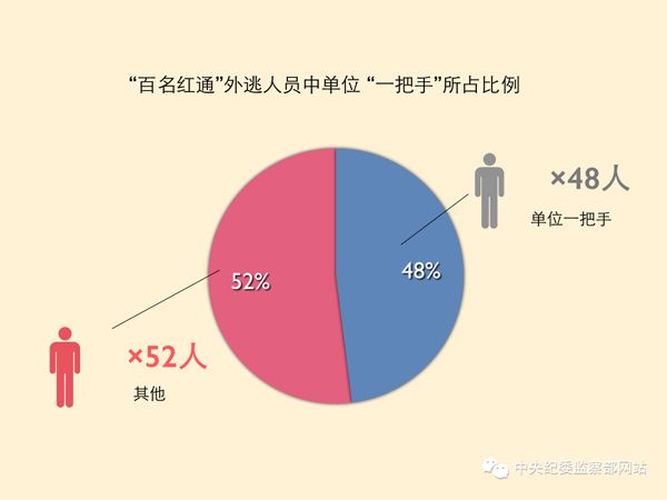 纵观“百名红通”人员名单,“一把手”的比例则为48%。