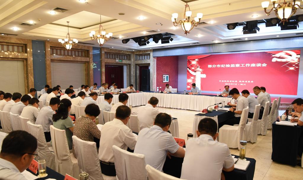 7月24日,部分市纪检监察工作座谈会在铜川召开。铜川市、延安市、榆林市纪委监委分别汇报了工作情况,省纪委监委领导班子成员逐一进行点评。省委常委、省纪委书记王兴宁出席会议并讲话。他强调,全省纪检监察机关要认真学习贯彻全国纪检监察工作会议精神,牢记初心使命,忠诚担当履职,推动全省纪检监察工作高质量发展。